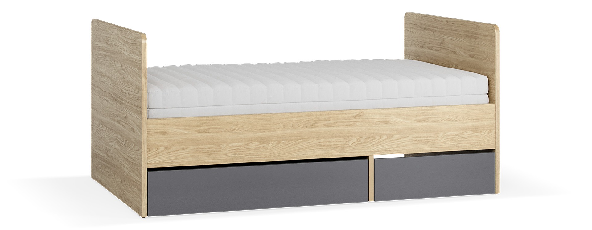 Schublade für Mitwachsendes Kinderbett MUVE – Zusätzlicher Stauraum unter dem Bett Die geräumige Schublade ist die perfekte Ergänzung für das mitwachsende Kinderbett MUVE. Sie verwandelt den leeren Raum unter dem Bett in wertvollen Stauraum – ideal für Bettzeug, saisonale Kleidung, Spielzeug, Bücher oder die separat erhältliche Klappmatratze der MUVE-Serie. Designerin: Dominika Drezner-Ilczuk Flexible Anzahl – eine oder zwei Schubladen Die Anzahl der Schubladen hängt von der Bettlänge ab: Beim 160 cm Bett (90x160 cm): Passt genau eine Schublade darunter. Beim ausgezogenen 200 cm Bett (90x200 cm): Passen zwei Schubladen nebeneinander. So können Sie den Stauraum genau an Ihre Bedürfnisse anpassen – und später bei Bedarf einfach eine zweite Schublade nachkaufen. Praktische Rollen & freies HerausziehenDie Schublade ist mit gummierten Rollen ausgestattet. Sie lässt sich leicht und leise ein- und ausschieben, ohne den Boden zu zerkratzen. Im Gegensatz zu festen Schienenführungen hat die Schublade keine festen Führungen – Sie können sie komplett herausziehen und haben vollen Zugriff auf den gesamten Inhalt. Das erleichtert das Befüllen und die Reinigung.Der Korpus und die Rückseite der Schublade sind immer in Eiche gehalten. Die Rückseite kann übrigens auch als zweite Front genutzt werden – so ist die Schublade von beiden Seiten ansehnlich. Maße und Material Die Schublade misst in der Breite 98,1 cm, in der Höhe 18,5 cm und in der Tiefe 94,9 cm. Sie ist aus robuster 16 mm starker Möbelplatte gefertigt, der Boden besteht aus HDF-Platte. Die Struktur ist mit Weichholzelementen verstärkt – das macht sie stabil und langlebig. Perfekt abgestimmt auf die MUVE-Kollektion Die Schublade ist speziell für das mitwachsende Kinderbett MUVE entwickelt worden. Sie passt perfekt in den Zwischenraum unter dem Bett und harmoniert optisch mit allen anderen MUVE-Möbeln. Mit der VOXBOX können Sie vorab planen, wie viele Schubladen unter Ihr Bett passen und wie die Farbkombination wirkt. Praktische Vorteile auf einen Blick Schafft zusätzlichen Stauraum unter dem Kinderbett 1 Schublade passt unter 160 cm Bett, 2 Schubladen unter 200 cm Bett Gummirollen – leichtgängig & bodenschonend Keine festen Führungen – komplett herausziehbarKorpus & Rückseite in  Eiche Rückseite auch als zweite Front nutzbar Aus 16 mm Möbelplatte – stabil & langlebig Perfekt abgestimmt auf das mitwachsende MUVE-Bett Auch für Klappmatratze der MUVE-Serie geeignet Mit der Schublade für das mitwachsende Kinderbett MUVE holen Sie sich cleveren Stauraum, der genau unter das Bett passt – flexibel erweiterbar und farblich anpassbar. So wird der Platz unter dem Bett optimal genutzt!