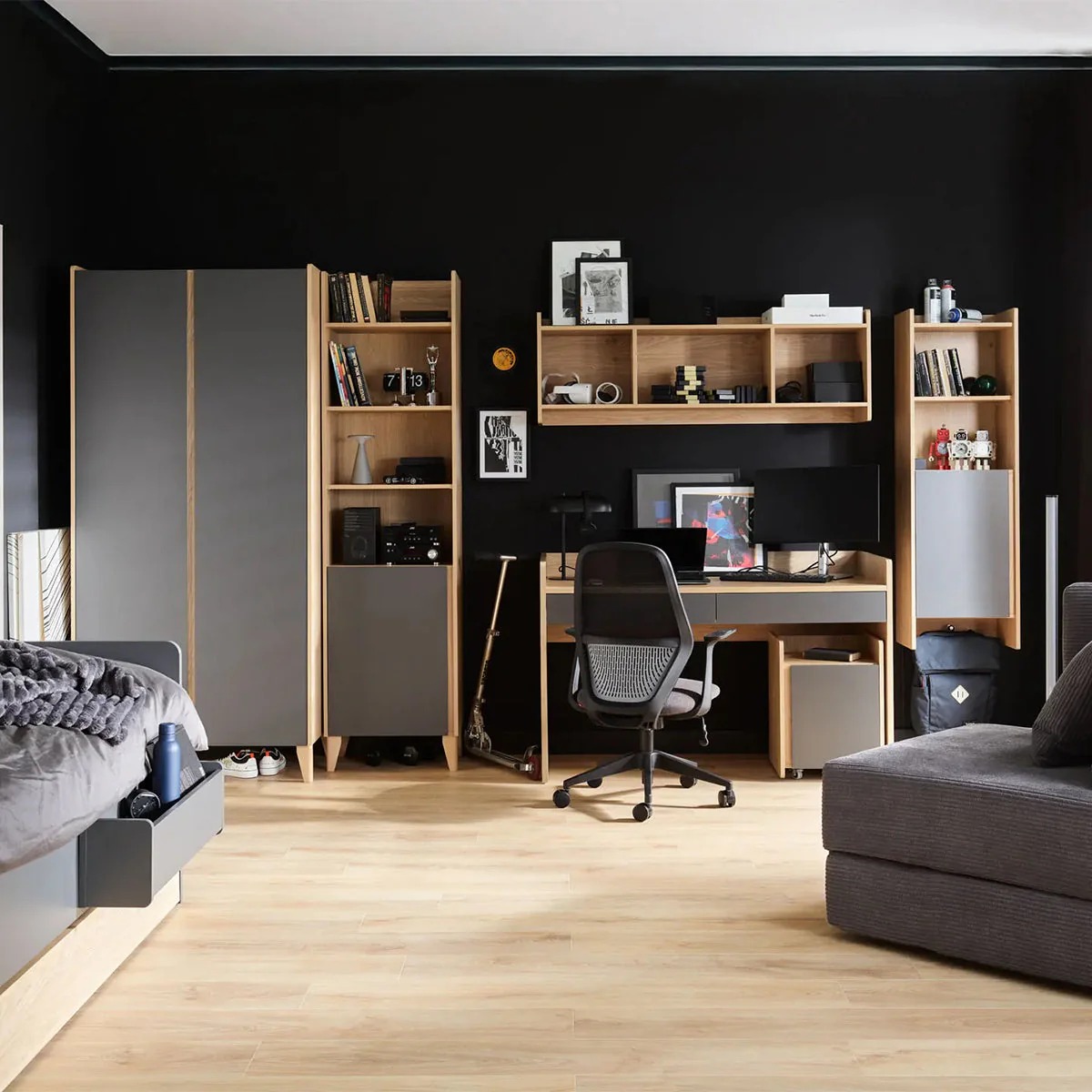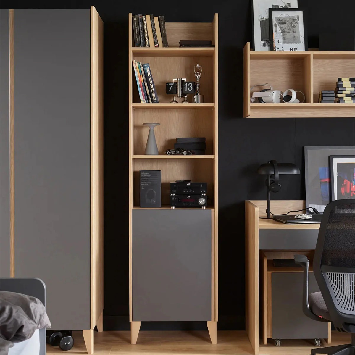 Wer noch mehr Stauraum braucht, kann das schmale Bücherregal mit dem breiten Muve-Regal kombinieren und so ein individuelles Einbau-Design schaffen. Mit dem VOXBox-System können Sie vorab visualisieren, wie das Regal in Ihrem Zimmer aussieht – für eine sichere Kaufentscheidung.