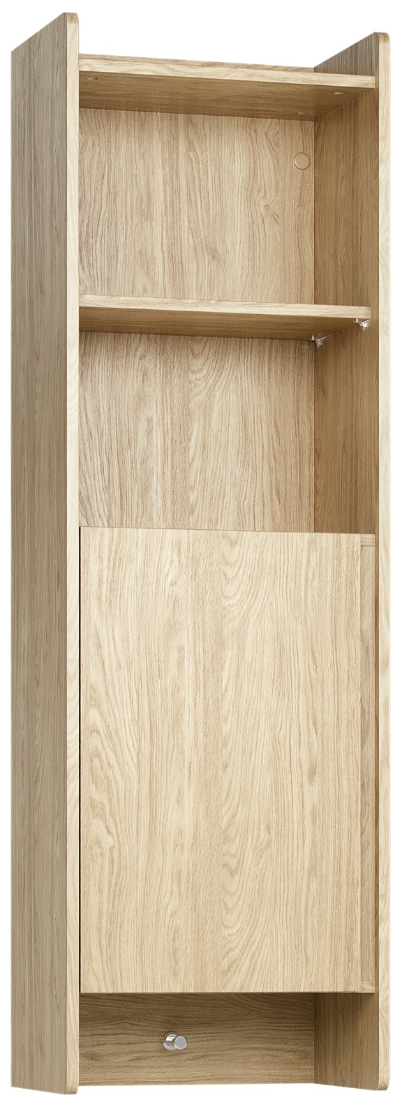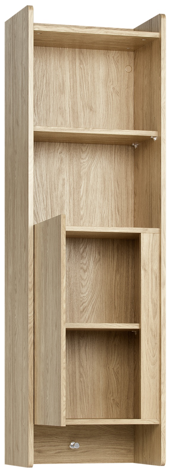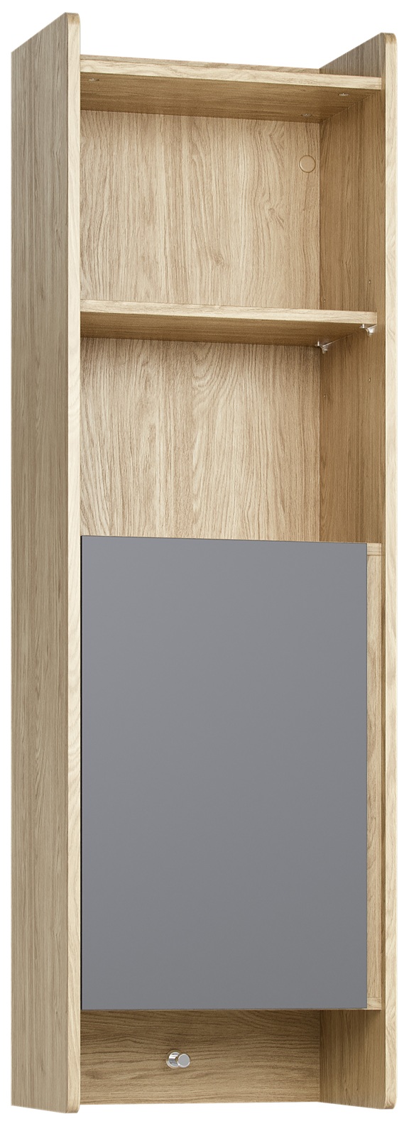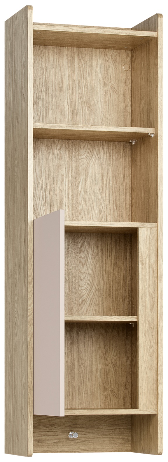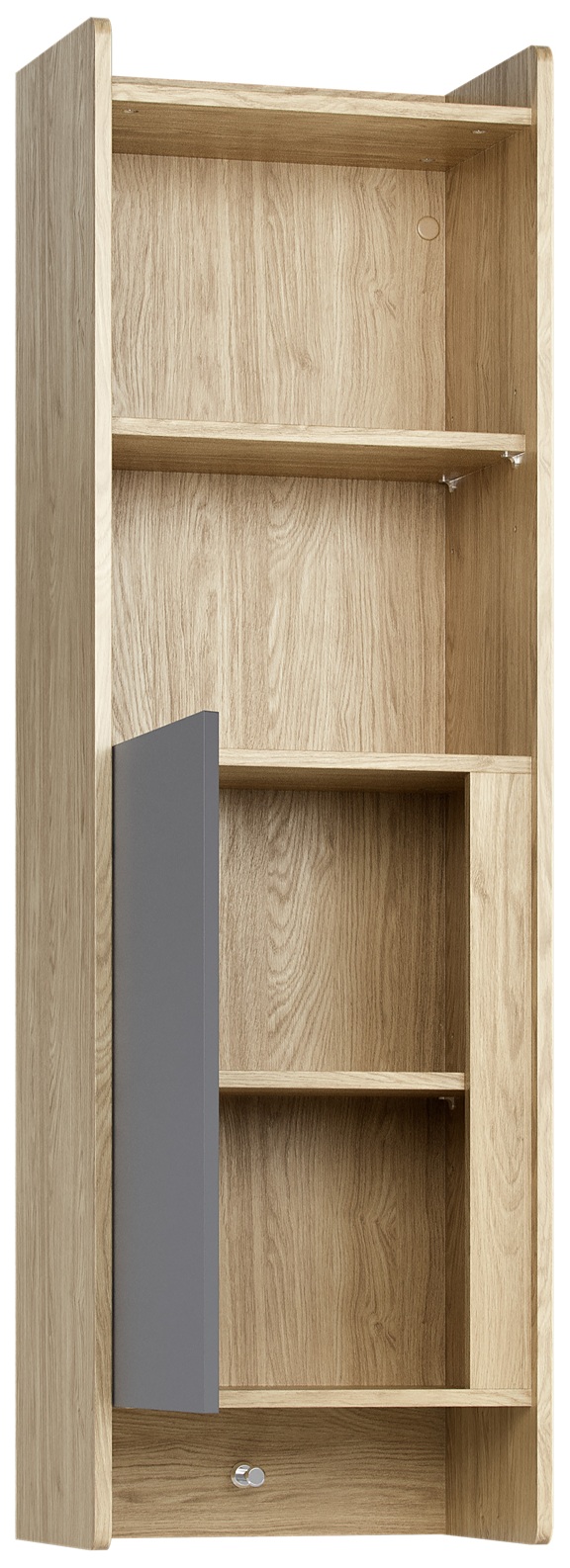 Der Hängeschrank Muve ist die ideale Lösung für kleine Kinder- und Jugendzimmer. Mit einer schmalen Breite von nur 44 cm und einer Höhe von 140 cm nutzt er den vertikalen Raum optimal aus – ohne wertvolle Bodenfläche zu beanspruchen. Zwei offene Fächer, ein höhenverstellbares Regal hinter der Tür und ein praktischer Haken für Rucksäcke machen ihn zum perfekten Aufbewahrungsprofi.