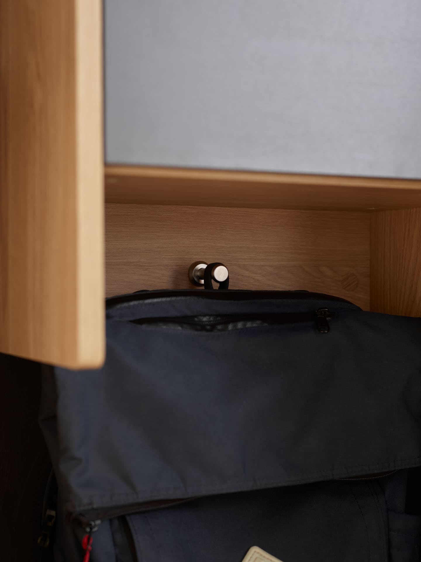 Ein seitlich angebrachter Haken bietet zusätzlich Platz für Schulranzen, Turnbeutel oder Jacken – so bleibt der Boden sauber und aufgeräumt.