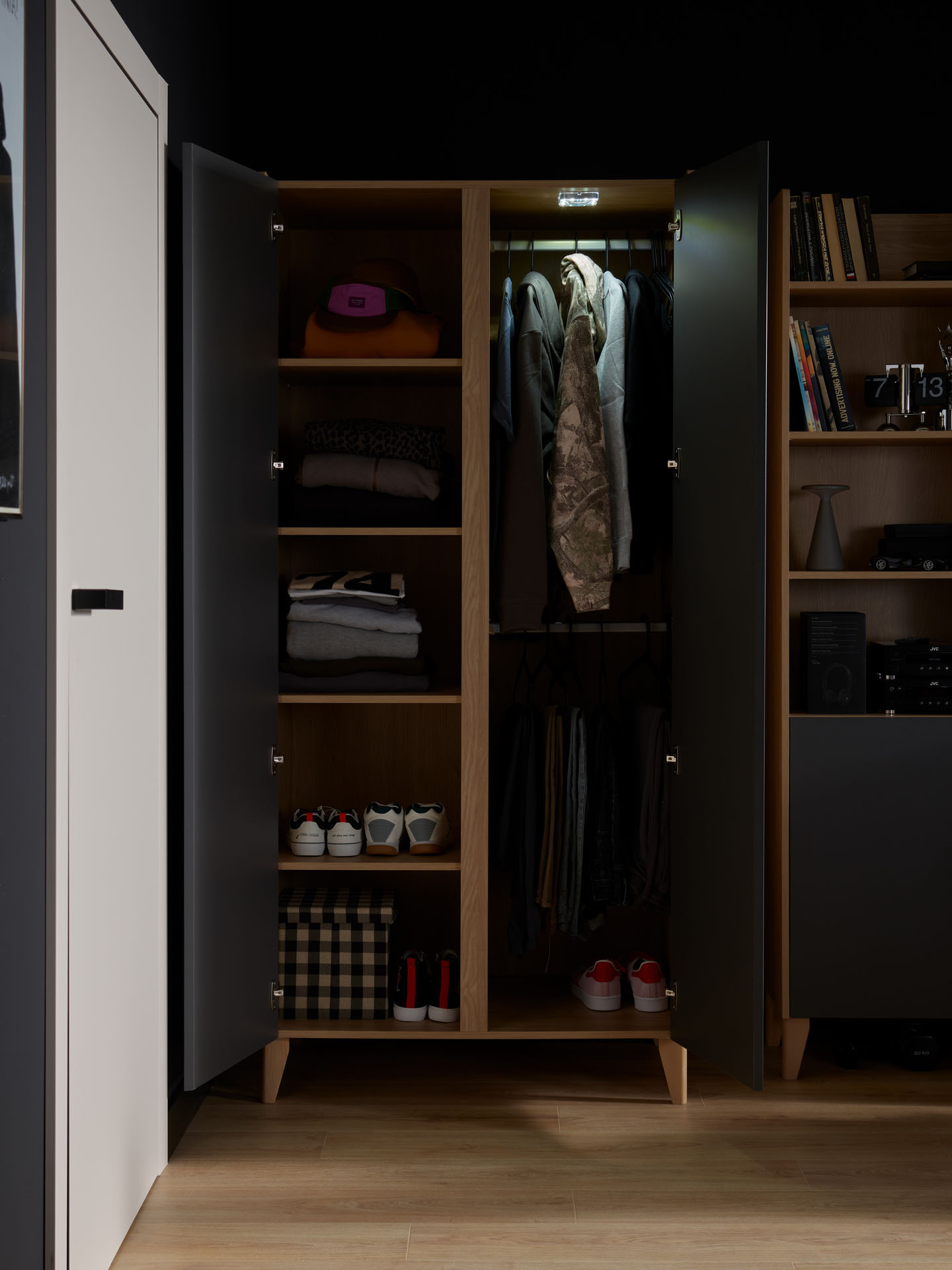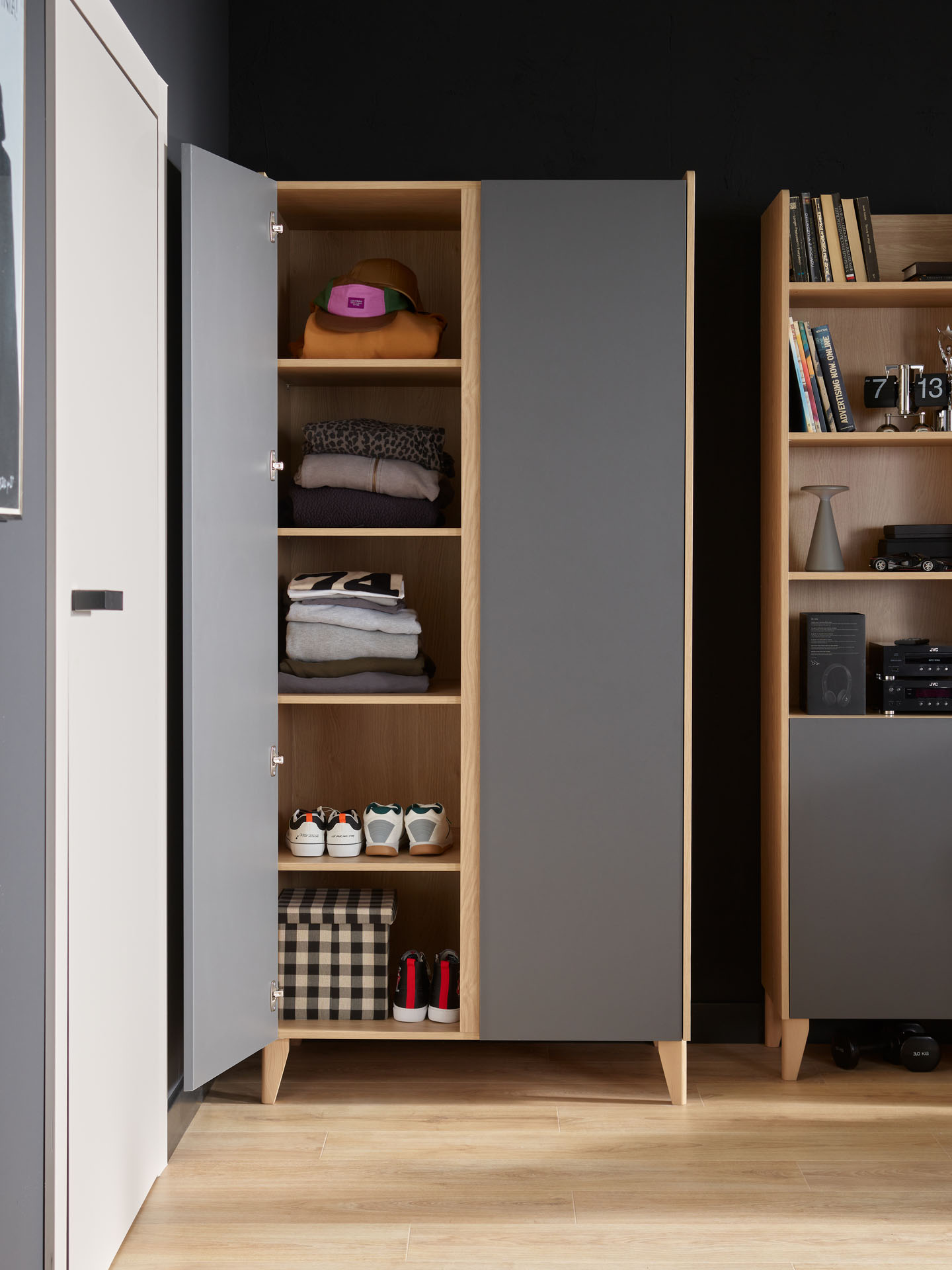 Den Muve-Schrank gibt es in drei sorgfältig abgestimmten Farbvarianten, die hochwertige Materialien mit moderner Optik vereinen: