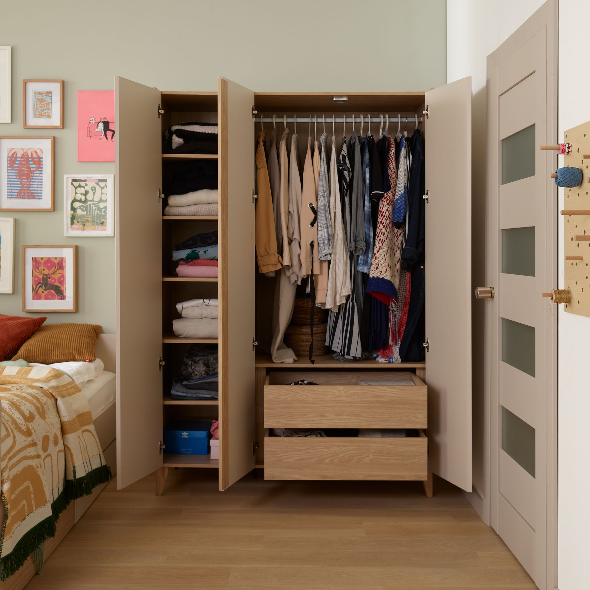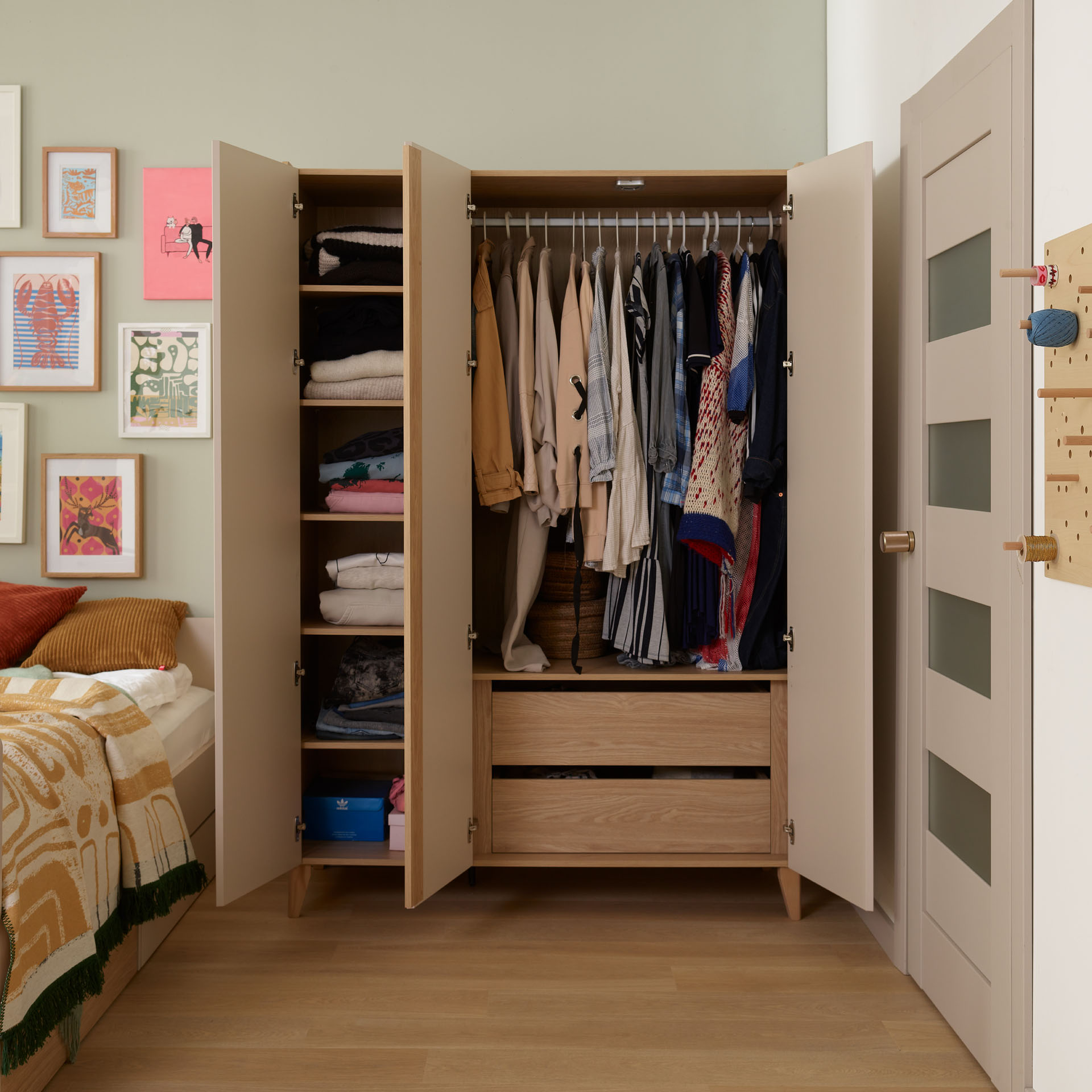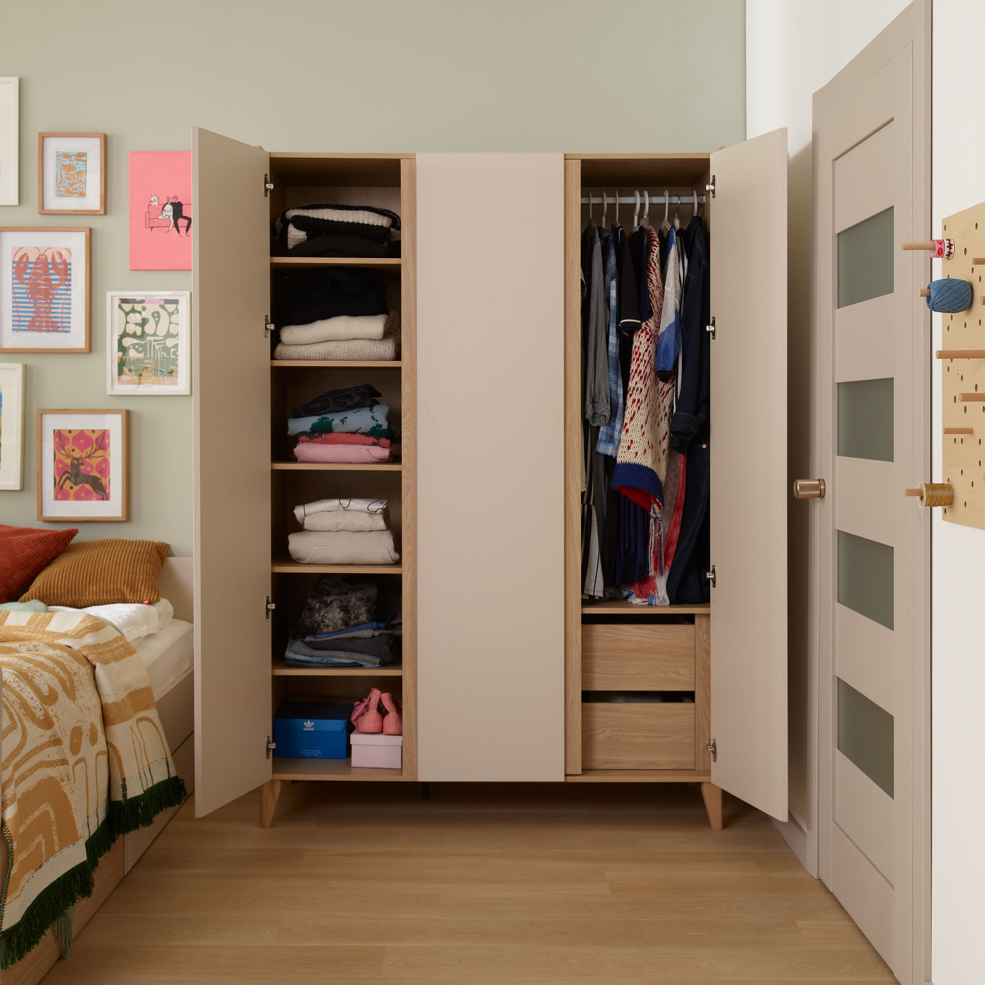 • Durchdachtes Innenleben: Mit einer Höhe von 204 cm wird der Platz optimal genutzt, damit Spielzeug, Bettwäsche und Kleidung ordentlich verstaut sind.