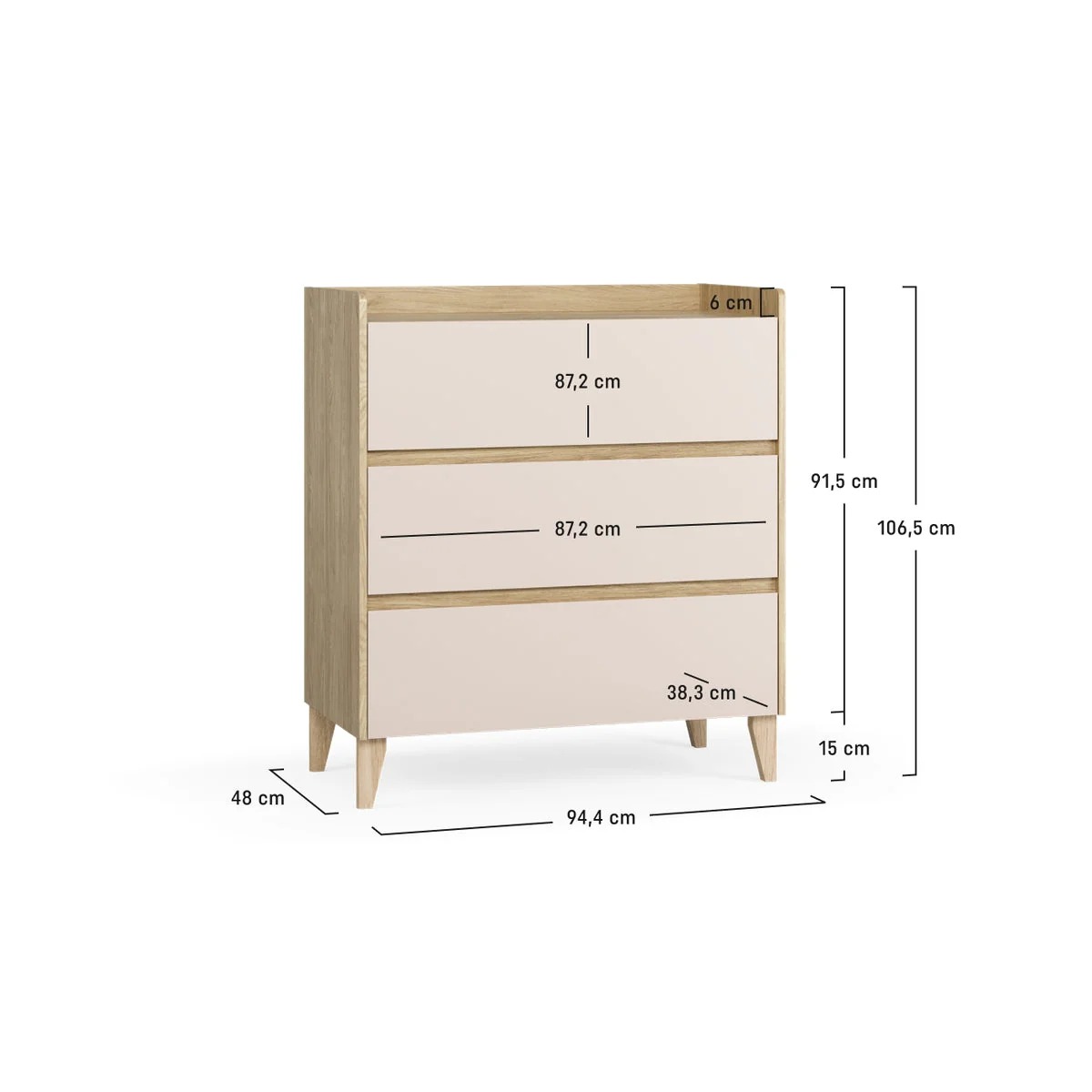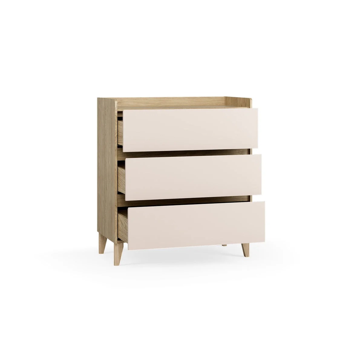 Die Kommode Muve aus der Muve Kollektion ist das ideale Möbelstück für jedes Kinderzimmer. Mit ihren 3 großzügigen Schubladen bietet sie reichlich Platz für Kleidung, Spielzeug und Accessoires. Dank des praktischen Organizers in der obersten Schublade halten Kinder ihre Lieblingsstücke ordentlich und übersichtlich – Ordnung halten wird zur Selbstverständlichkeit.