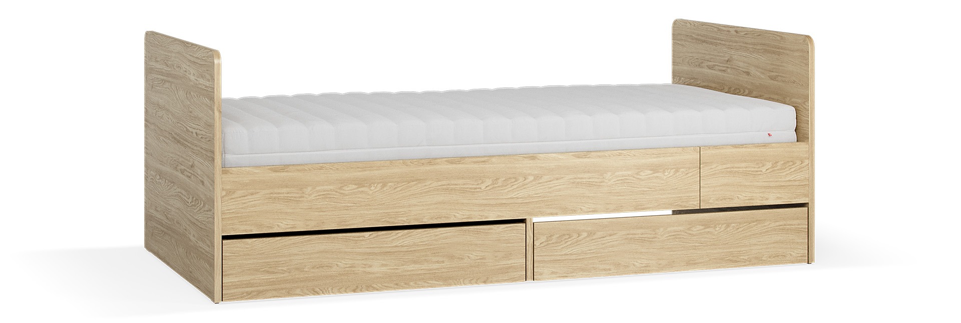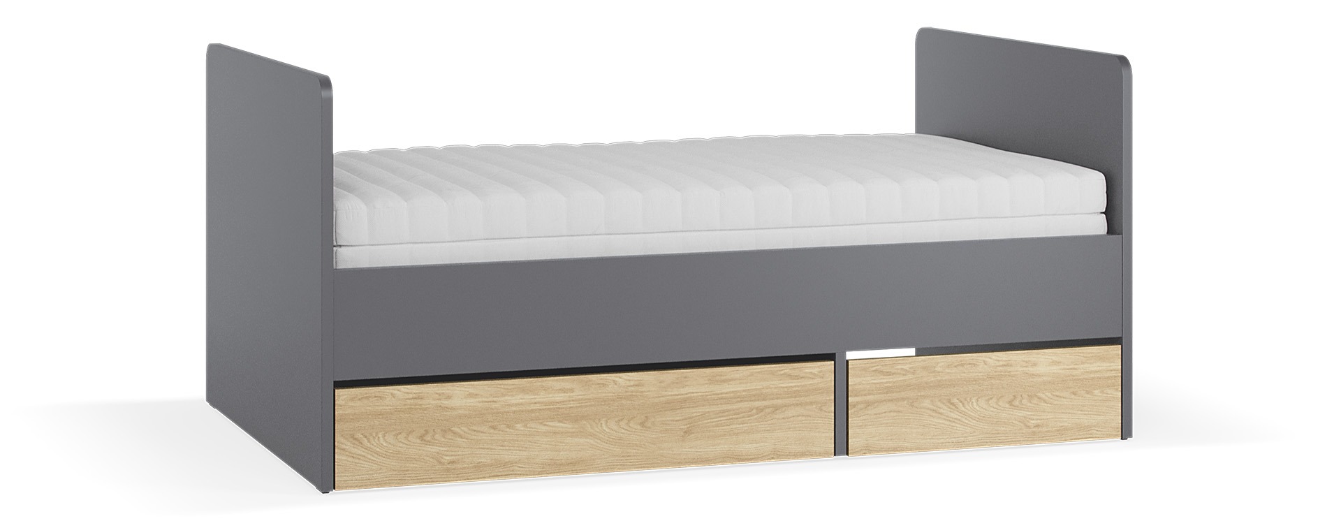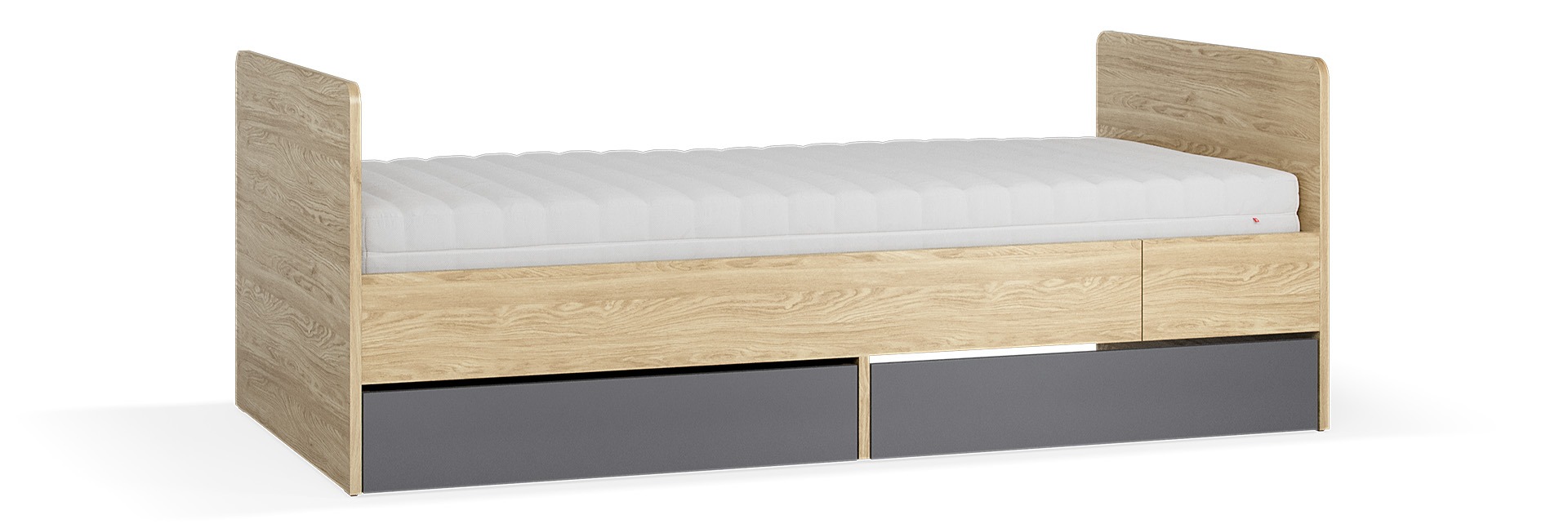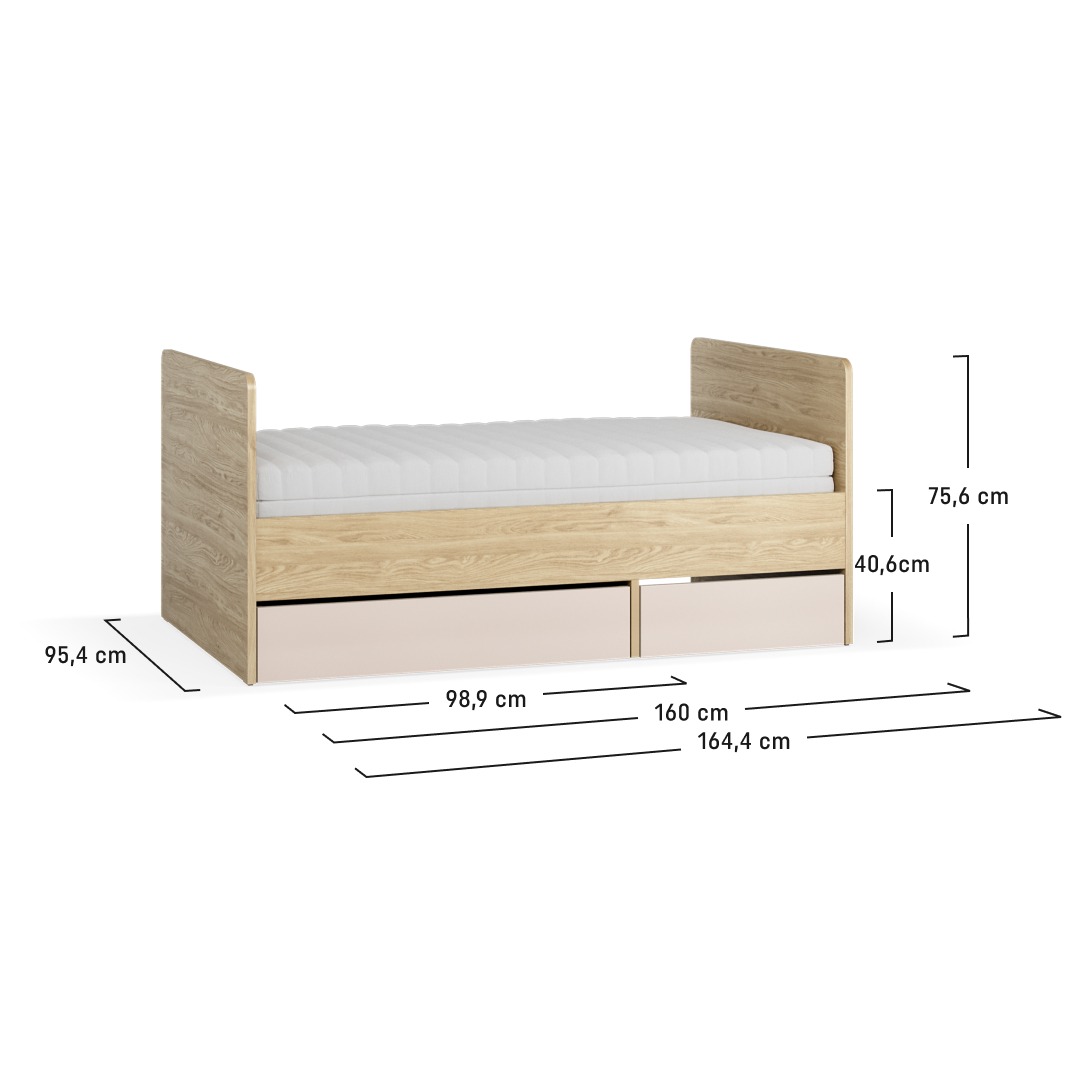 Das Bett wird in der kürzeren Variante (90x160 cm) geliefert. Wenn Ihr Kind größer wird, bauen Sie einfach das Erweiterungselement dazu – schon passt eine Standard-90x200-cm-Matratze hinein. So begleitet das Bett Ihr Kind vom Kleinkind- bis ins Jugendalter, ohne dass Sie ein neues kaufen müssen.