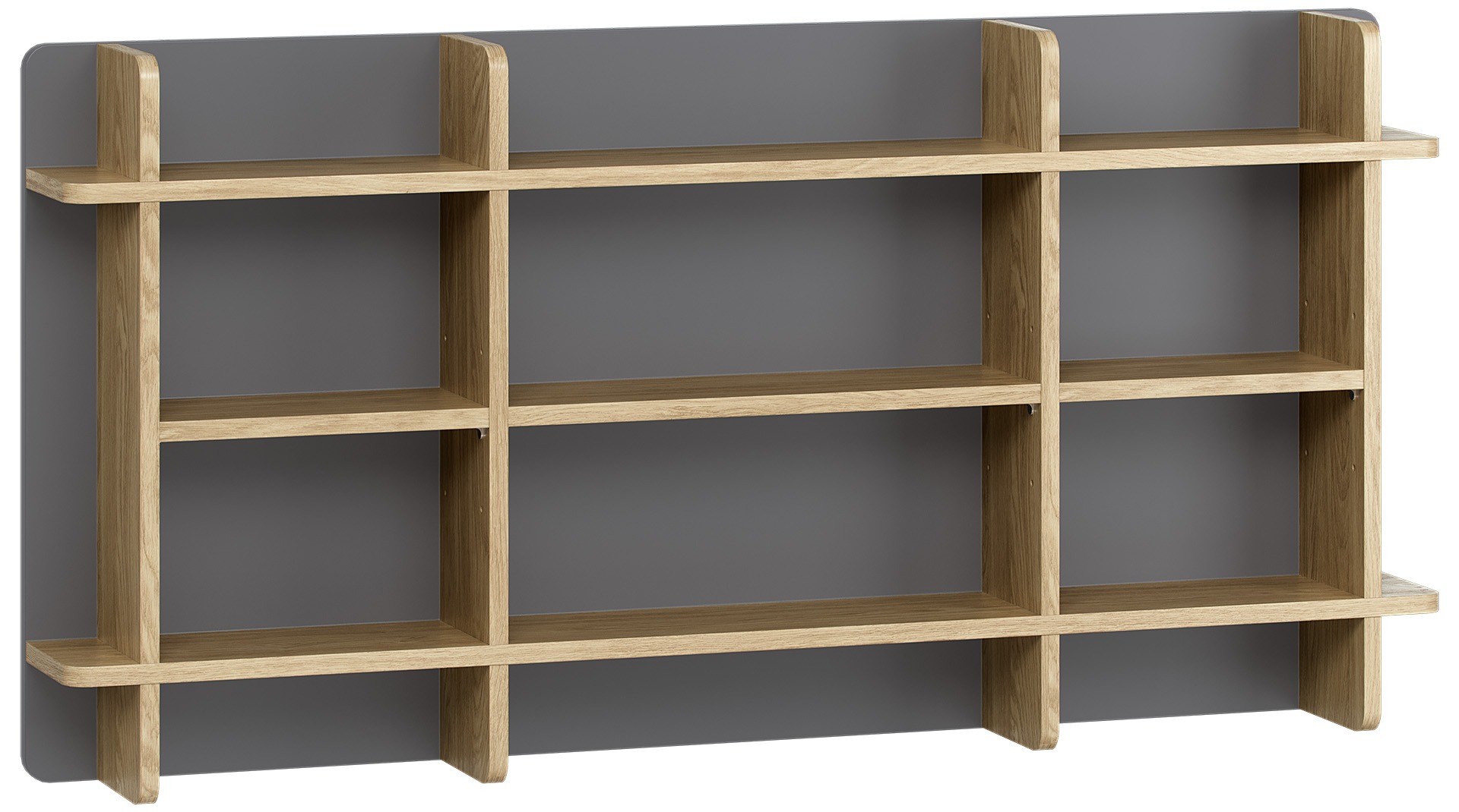 Die Rückwand des Regals kann in Ihrer Wunschfarbe gewählt werden. Die Regalböden und Trennwände sind immer in geölter Eiche gehalten.