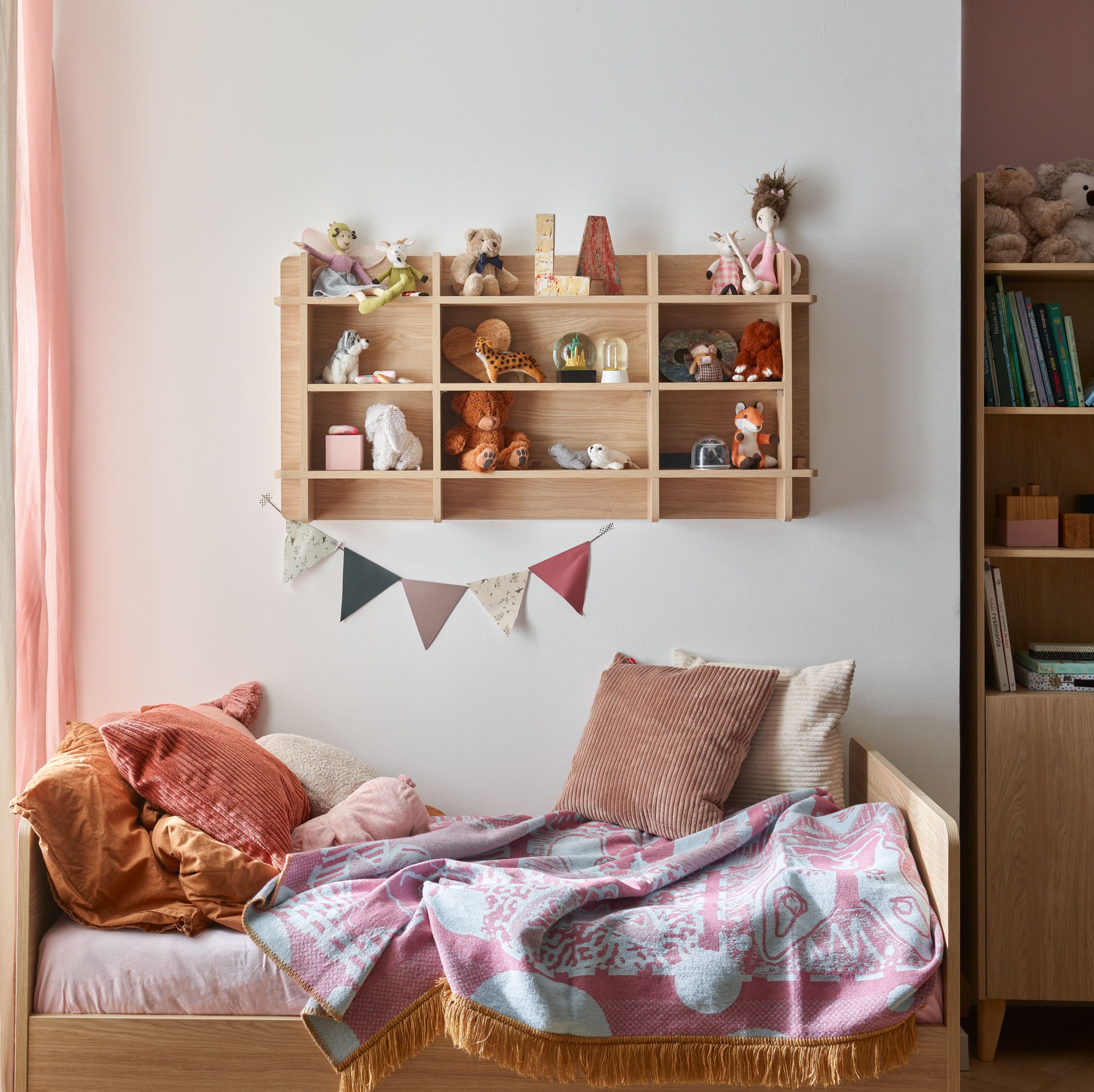 Mit dem Regal für Figuren MUVE verwandeln Sie die Wand in eine persönliche Ausstellungsfläche – flexibel, sicher und perfekt für alle Schätze Ihres Kindes!