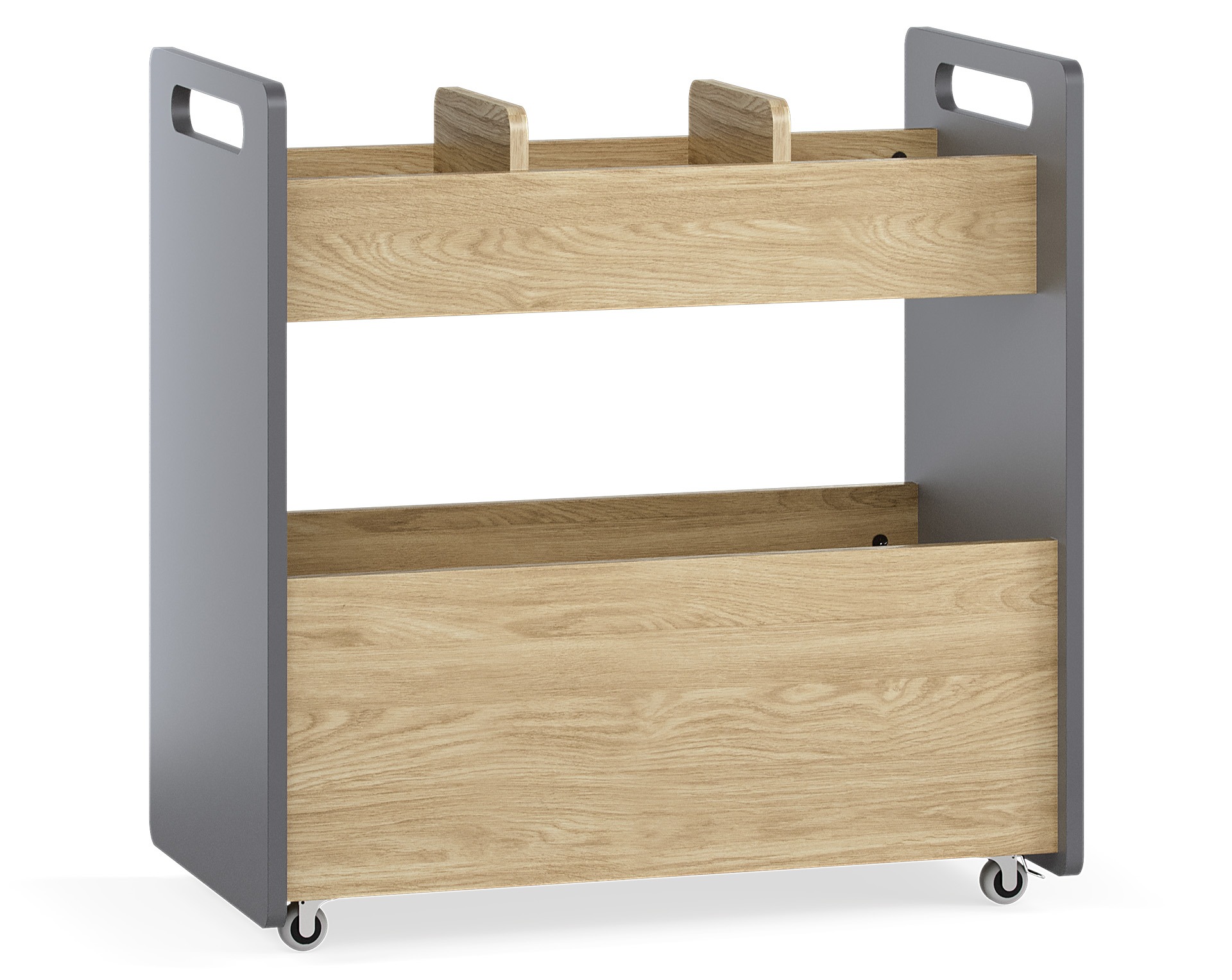 Der Spielzeugwagen bietet zwei unterschiedliche Aufbewahrungsmöglichkeiten. Das untere, tiefe Fach ist ideal für größere Gegenstände wie Bücher, Bausteine, Teddybären oder Spielzeugkisten. Oben befinden sich zwei flachere Fächer – perfekt für Buntstifte, Marker, kleine Figuren oder Bastelmaterial. So haben Kinder alles griffbereit und können selbst ihre Lieblingssachen organisieren.